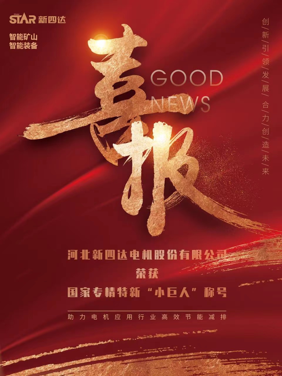 Recently, the website of the Hebei Provincial Department of Industry and Information Technology announced the fourth batch of specialized, refined, characteristic, and innovative "little giant" enterprises and the first batch of re-evaluated enterprises, with 137 enterprises from the province included, among which Hebei New Sida Electric Motor Co., Ltd. is on the list.