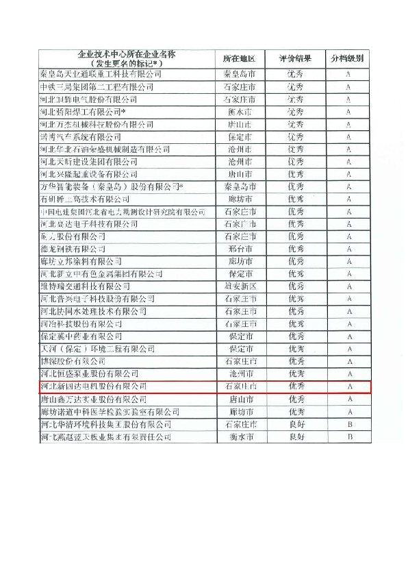 近日,河北省發(fā)改委進(jìn)行了2024年河北省企業(yè)技術(shù)中心評(píng)價(jià)結(jié)果公示。根據(jù)《河北省企業(yè)技術(shù)中心管理辦法》(冀發(fā)改高技規(guī)[2024]1號(hào))、《河北省企業(yè)技術(shù)中心認(rèn)定評(píng)價(jià)工作指南》(冀發(fā)改高技[2024]61號(hào))相關(guān)規(guī)定,發(fā)改委組織開展了2024年省級(jí)企業(yè)技術(shù)中心評(píng)價(jià)工作,委托第三方機(jī)構(gòu)對(duì)各市報(bào)送的省企業(yè)技術(shù)中心評(píng)價(jià)材料進(jìn)行了形式審查、材料復(fù)核和專家評(píng)審,形成了評(píng)價(jià)結(jié)果。河北新四達(dá)電機(jī)股份有限公司獲得2024年省級(jí)企業(yè)技術(shù)中心A級(jí)優(yōu)秀評(píng)價(jià)。